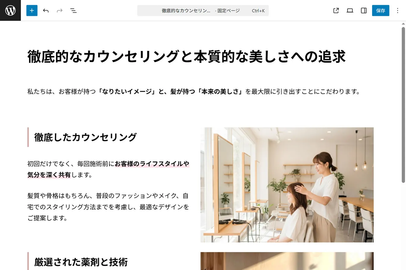 WordPress標準エディタを拡張し、専門知識がない人でも簡単にページを作成することができます。