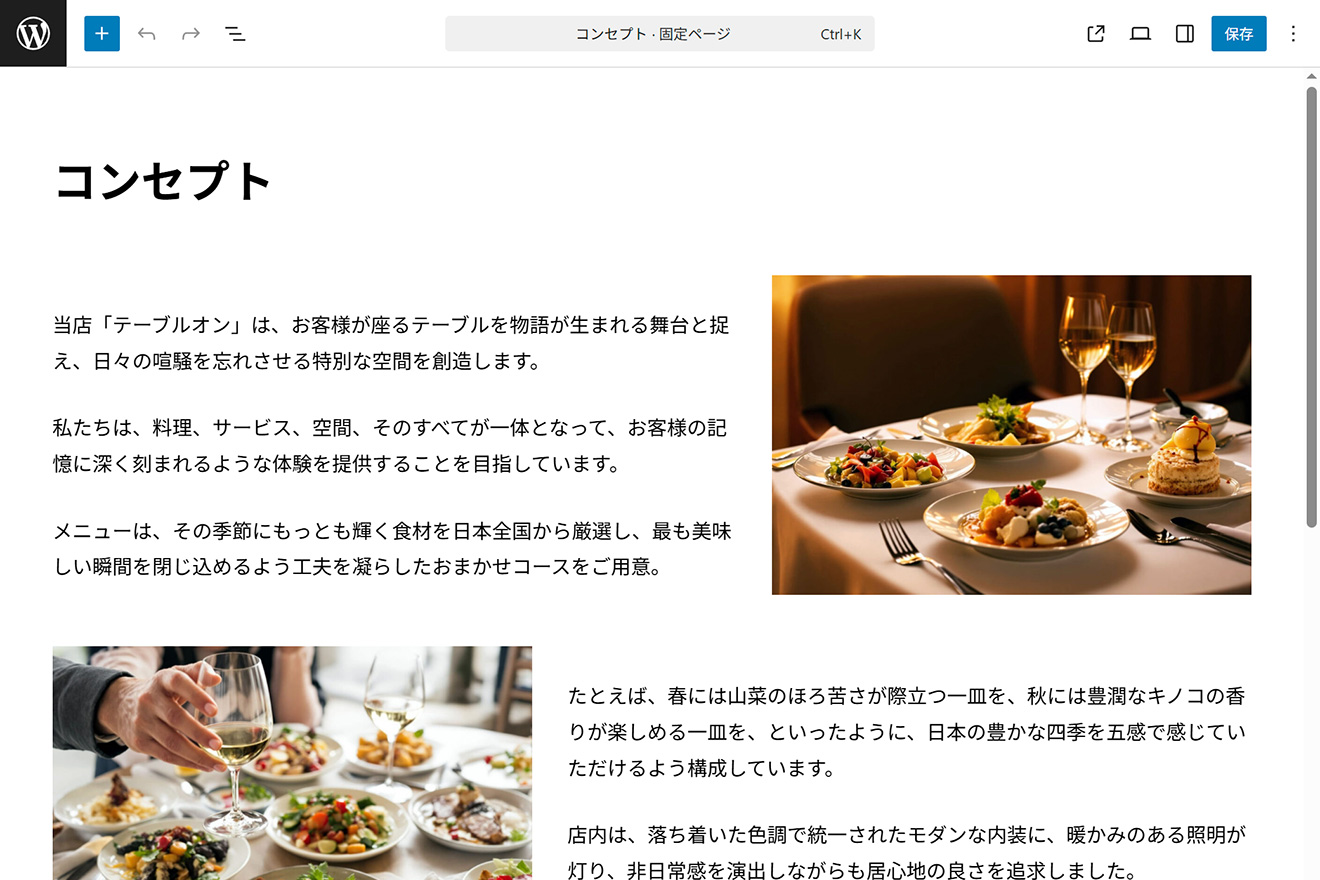 WordPress標準エディタを拡張し、料理やシェフ紹介、求人票の掲載も可能。専門知識がなくても、美しく整ったページを簡単に作成することができます。