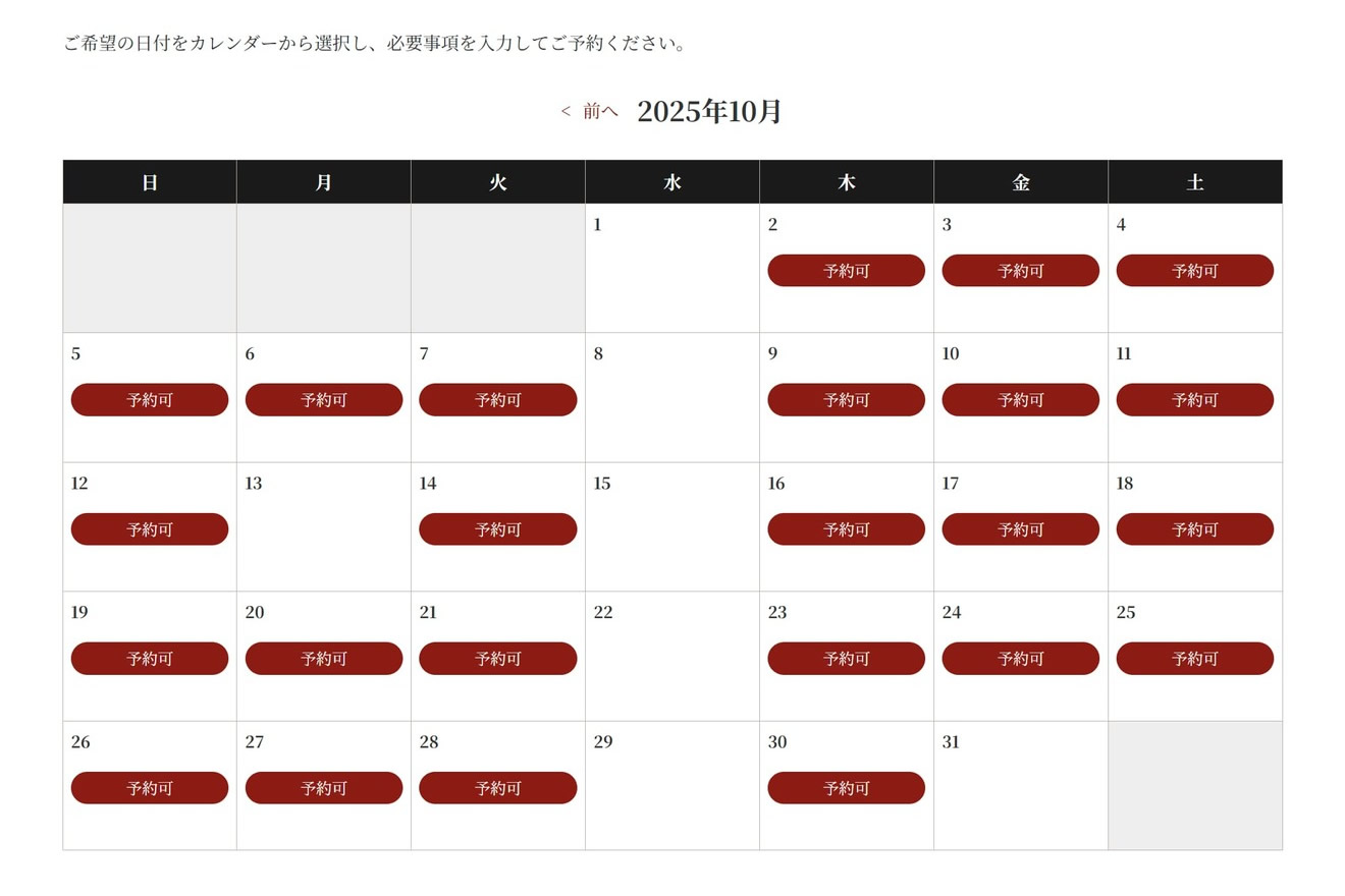 - 予約カレンダーと予約フォームの自動生成