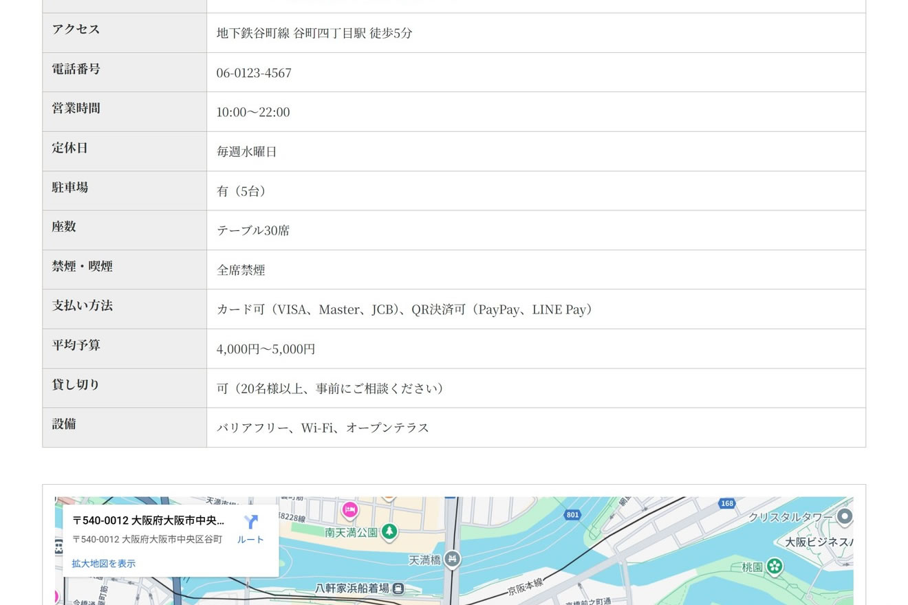 店名や住所、営業時間、座席数や支払方法など、来店に必要な情報を簡単に公開可能。Googleマップ表示にも対応し、お客様が安心して来店できるサイトを作れます。